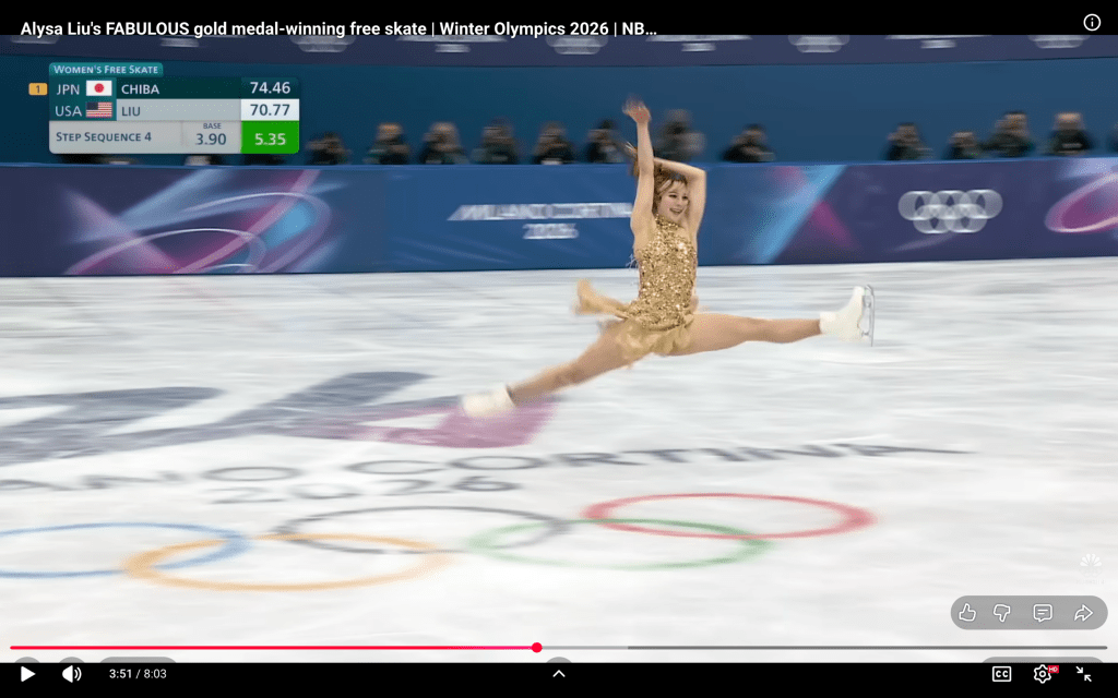 The champion who chose joy: One athlete – American, not Norwegian – made the quest for fun her primary competitive goal. The women’s figure skating event featured the most colorful of the performers, and that’s not just referring to her gold-striped hairstyle. Alysa Liu was also the most exuberant and joyful of the skaters, and she often talked about how attaining a sense of happiness while skating was her most important goal in competition. Her backstory is pretty unusual, too: after winning the US championship at 13(!) and retiring at age 16(!!), her pursuit of joy led her back to competition and to an Olympic gold medal. Here are some of the commentaries she inspired with her exuberant performances: